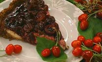 3. Желатинът се разтваря в малко хладка вода. Всички останали продукти се слагат в тенджерка, за да кипнат. Варят се около 2–3 минути, към тях се прибавя набъбналият вече желатин и топингът се сваля от огъня. Разпределя се върху изпечения и охладен блат и кейкът се оставя да се охлади